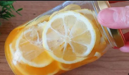 Apoi se pun câteva felii într-un borcan de sticlă peste care se toarnă 1 lingură de miere naturală, zeama de lămâie și o linguriță ghimbir măcinat peste care se pun restul de felii de lămâie in borcan.