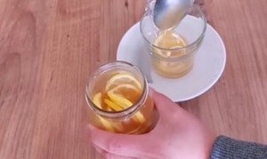 Mod de folosire. După prima zi in care preparatul se ține de exemplu in cămară într-o ceașcă se scot din borcan cu ajutorul unei furculițe 2 felii de lămâie, dacă sunteți foarte răcit/ă se pun 2 lingurițe de zeamă din borcan dacă răceala e doar la început se pune 1 linguriță din zeama din borcan peste care se toarnă apă fiartă.