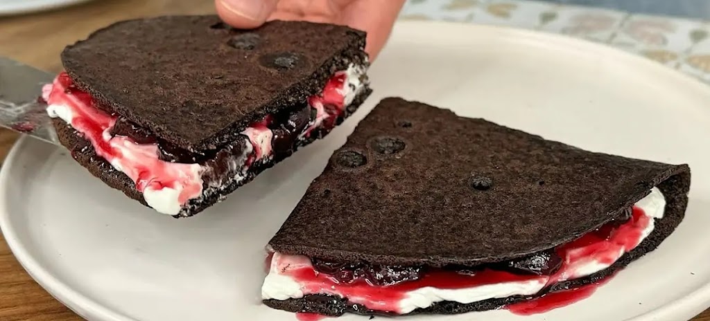 Este vorba despre niște clătite pe bază de ovăz umplute cu dulceață fără zahăr.