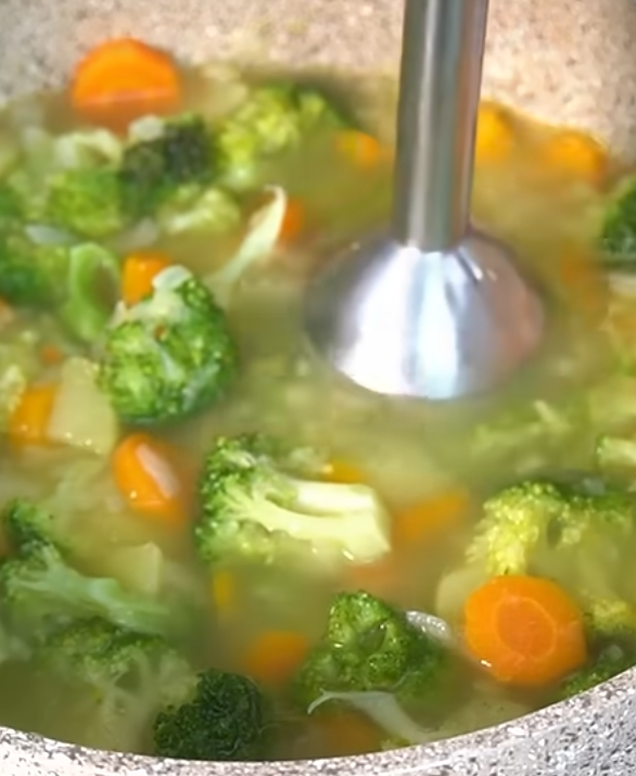 După ce au fiert cu ajutorul unui blender sau un mixer vertical se transformă supa puțin în piure.